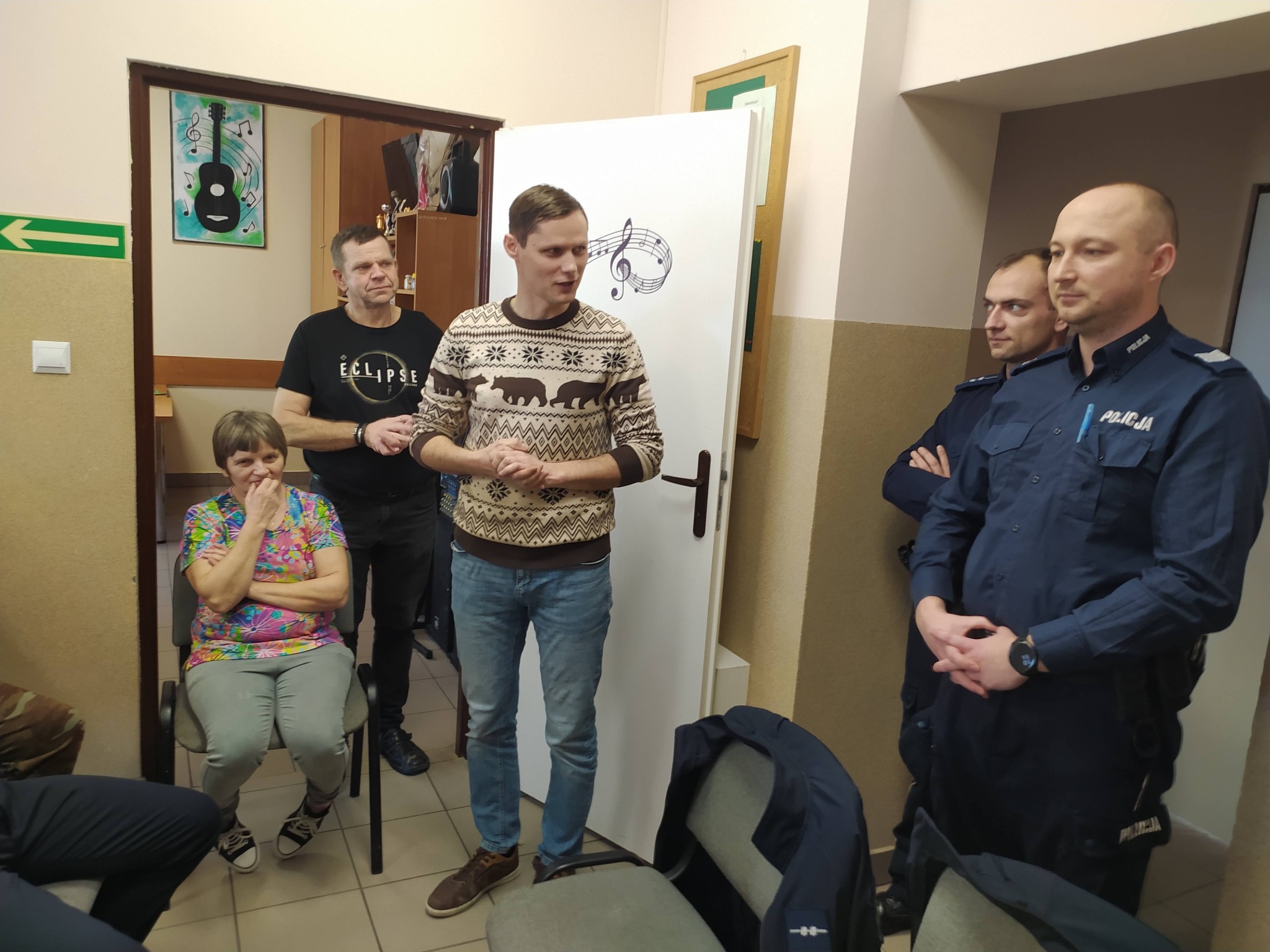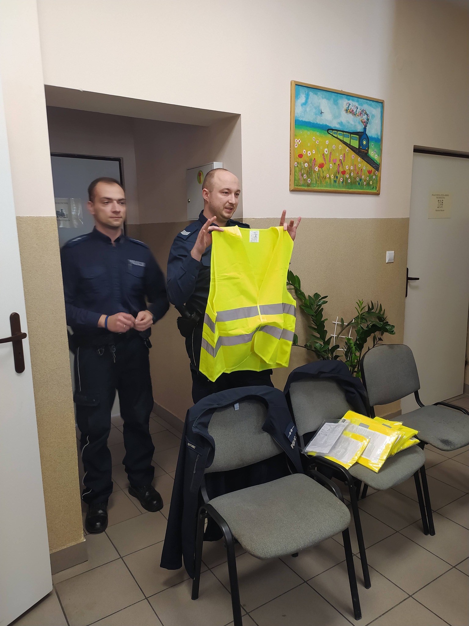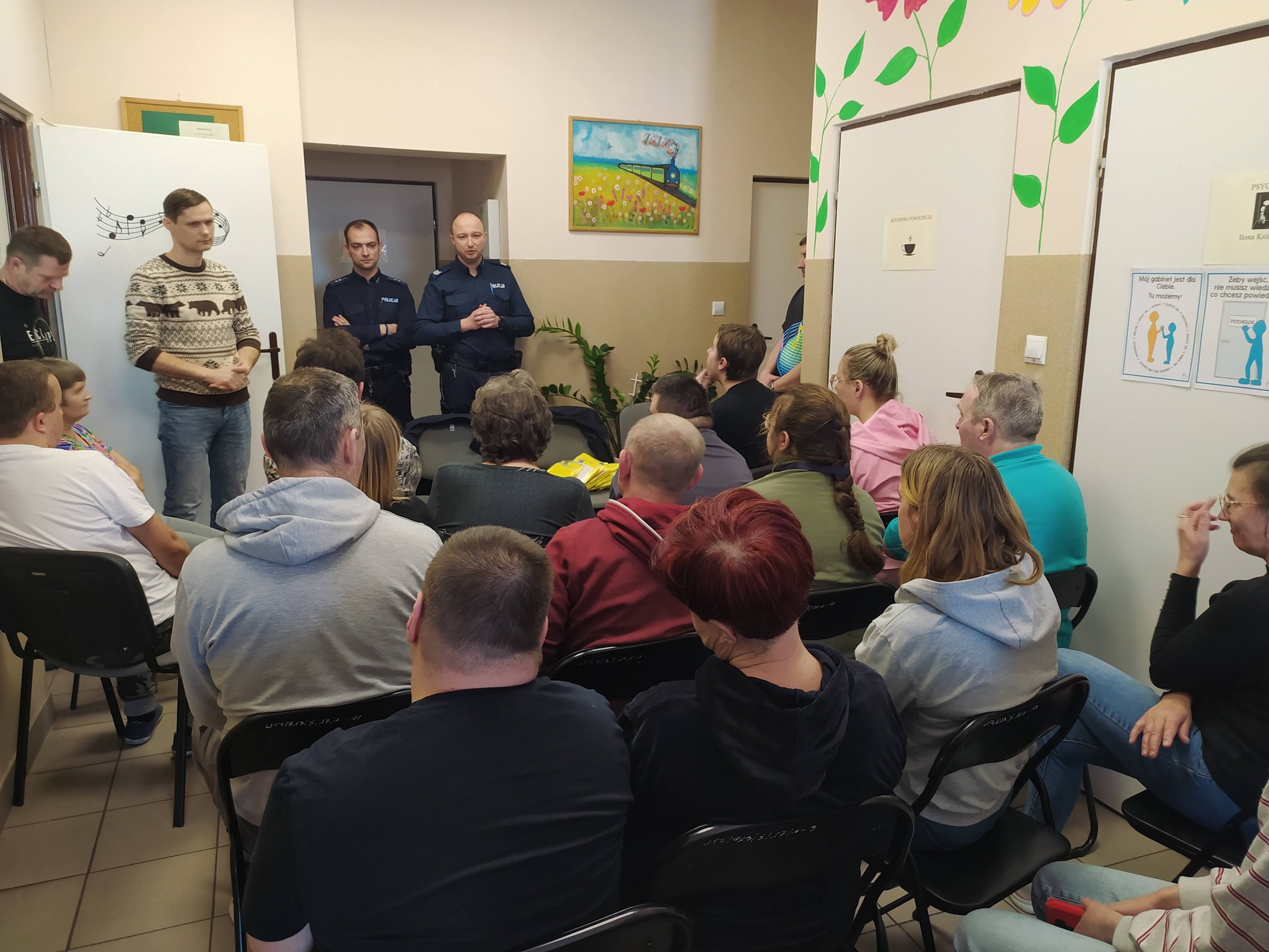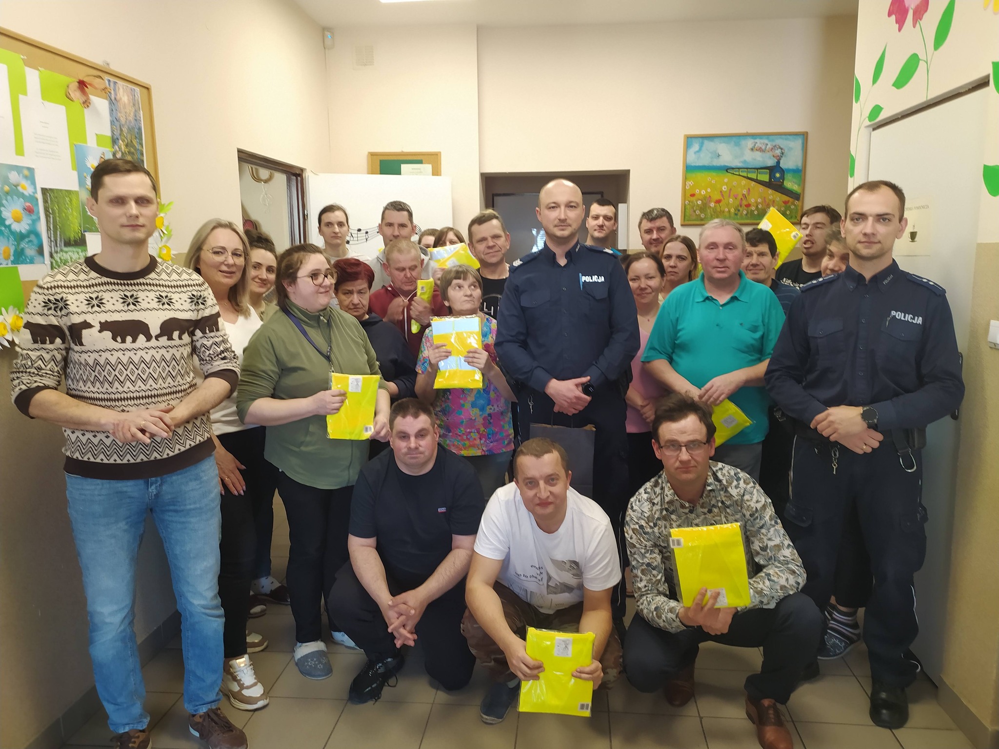 Każdy z nas chce czuć się bezpiecznie, dlatego ogromnie ważne dla nas jest poczucie bezpieczeństwa naszych uczestników oraz edukacja w tym zakresie. W ramach tego zaprosiliśmy do naszej placówki dzielnicowych z Komisariatu Policji w Paradyżu: sierż. szt. Dominika Zalegę oraz mł. asp. Krzysztofa Turlińskiego. Tematem pogadanki było bezpieczeństwo na drodze, w przestrzeni publicznej oraz jak reagować w przypadku zagrożenia w sieci internetowej i rozpoznawać próby oszustwa np. metodę ,,na wnuczka” , ,,na policjanta” i inne. Abyśmy byli bardziej bezpieczni i widoczni, zostaliśmy obdarowani kamizelkami odblaskowymi.